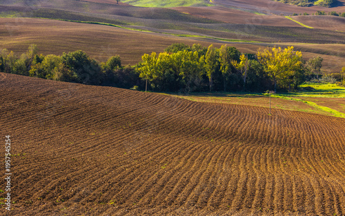 © Tomasz Wozniak, Obraz premium Tuscan hills showing abstract patterns of plowed soil, Italy.