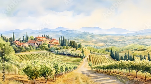 Naklejka premium Tuscan Villa Nestled Among Rolling Hills And Vineyards