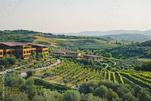 Fototapeta premium Tuscan Vineyard Panorama: Rolling Hills, Sun-Drenched Vines, Italian...