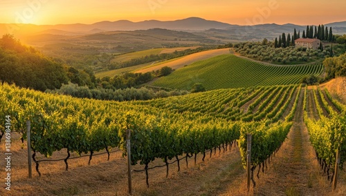 © Adriyanca, Fototapeta premium Tuscan Vineyard Sunrise Panorama