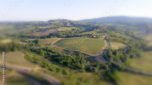 Fototapeta premium Tuscany countryside hills, stunning aerial view in spring