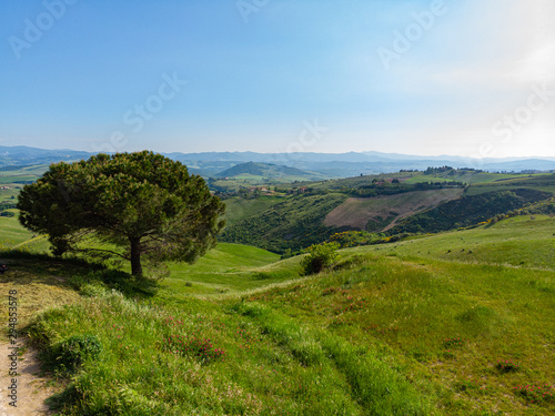 Fototapeta premium Tuscany countryside hills, stunning aerial view in spring.