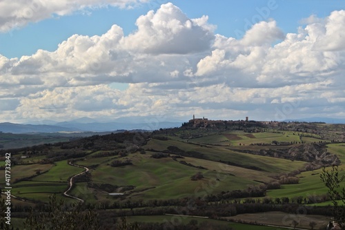 © Julia Kostina , Naklejka premium Tuscany, Italy. Panorama with medieval town.