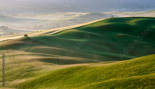 Obraz premium Tuscany spring morning. View of the sunlit hills.