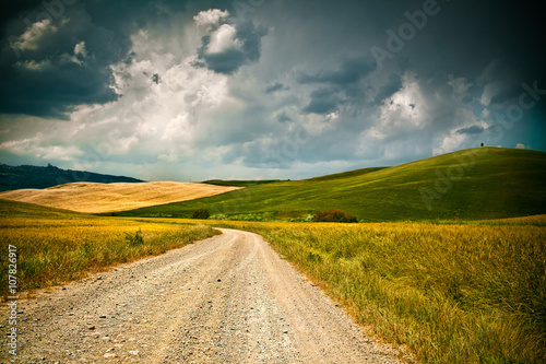 Fototapeta premium Tuscany wheat field hill after a storm