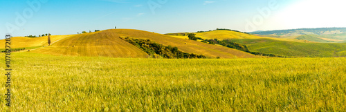Fototapeta premium Tuscany wheat field hill in a sunny day