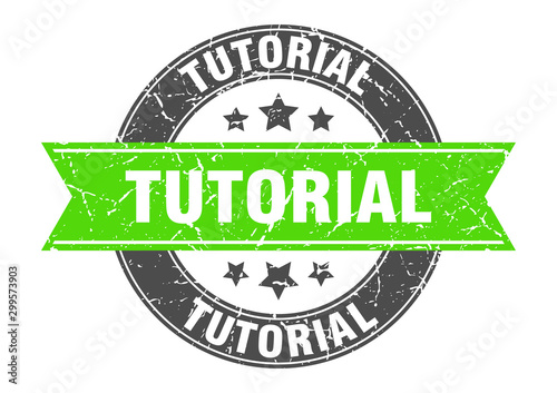 © Aquir, Obraz premium tutorial round stamp with green ribbon. tutorial