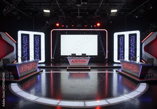 Fototapeta premium 近未来的なデジタルステージ、オーディション、討論、番組、スタジオセット、TVショー、イベント、背景素材、合成用スクリーン