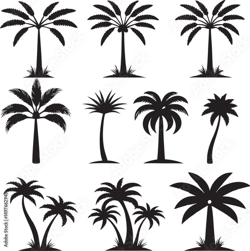 Fototapeta premium Twelve Black Silhouettes of Palm Trees on White