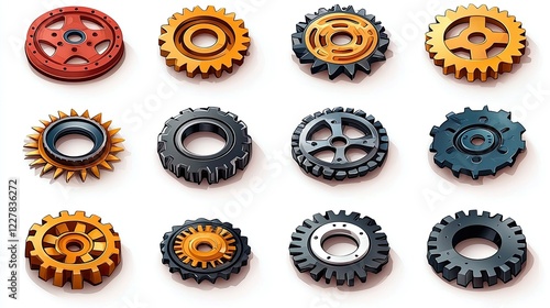 Obraz premium Twelve Colorful Gear Icons Displayed Against White Background
