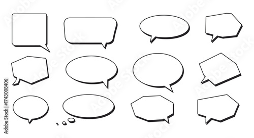Obraz premium Twelve comic speech bubbles with varying shapes and sizes rendered in a bold...