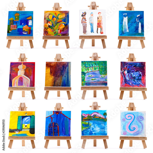 © mreco, Fototapeta premium Twelve mini paintings on easels