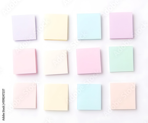 Fototapeta premium Twelve pastel colored sticky notes arranged in a grid