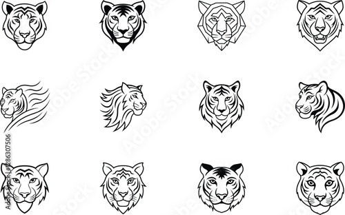 Fototapeta premium Twelve Tiger Head Designs Line Art, Logos, and Illustrations