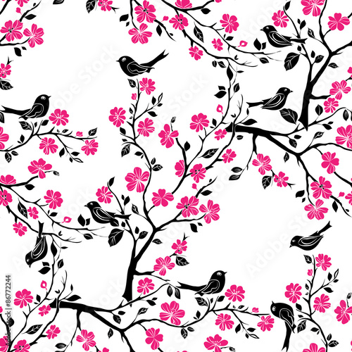 © alesikka, Fototapeta premium Twig cherry blossoms. Seamless