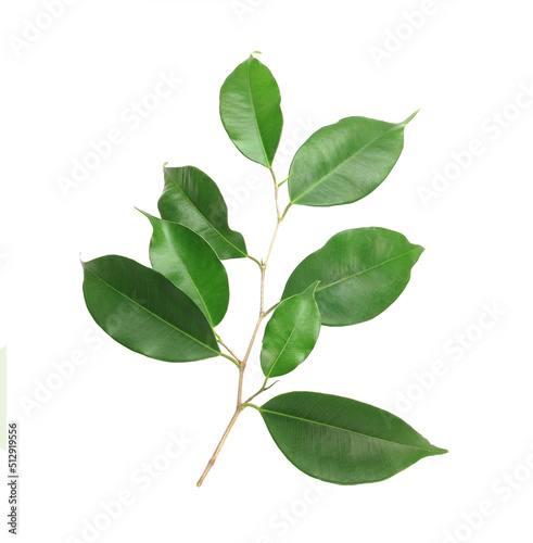 Fototapeta premium Twig with green leaves isolated on white
