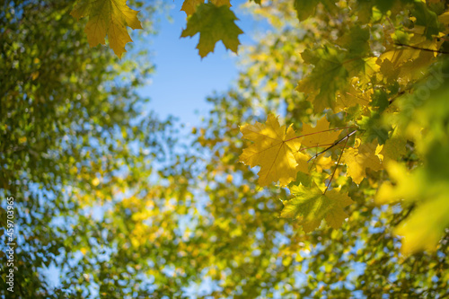 © Grigoriy Lukyanov, Obraz premium Twig with maple leaves close up