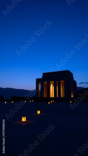 © Kimichiren, Obraz premium Twilight Architectural Monument Against Cobalt Sky