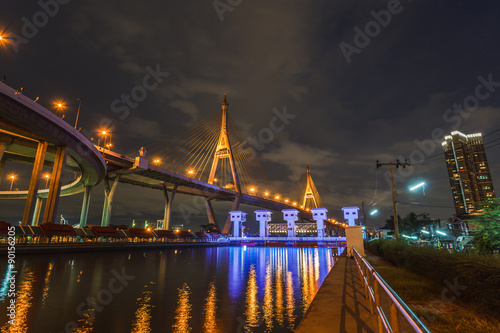 © takepicsforfun, Obraz premium Twilight at Bhumibol Bridge