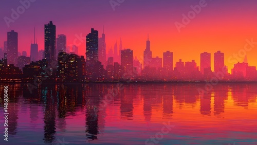Fototapeta premium Twilight City Reflections on Water