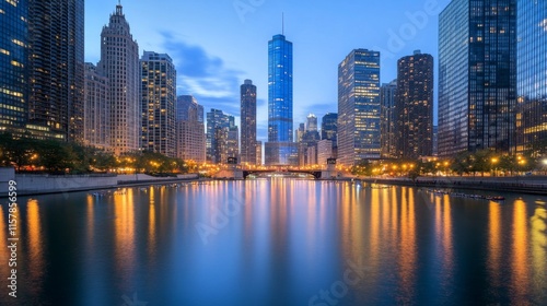 Fototapeta premium Twilight Cityscape with Reflections on Skyscrapers