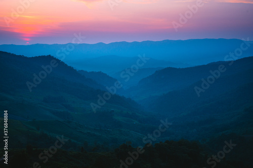 Fototapeta premium Twilight color mountain The mountain valley after the twilight light sunset
