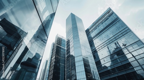 © photolas, Fototapeta premium Twilight descends on a bustling city as the lights from modern skyscrapers reflect off glass facades.