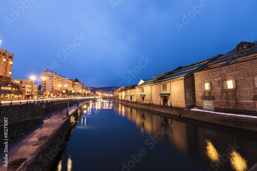 © bunditsn, Naklejka premium Twilight hour in Otaru canal