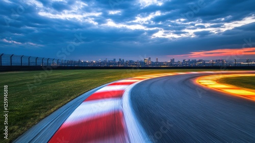 © Biancaart, Naklejka premium Twilight Racetrack Curve City Skyline Background