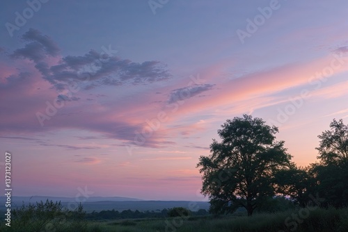 © Michael, Fototapeta premium Twilight Serenity: A Soft Pastel Sky with Gentle Twilight Colors