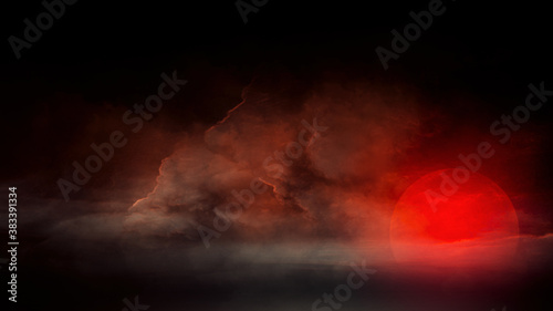 © FullFrames, Naklejka premium Twilight sky and red moon with 3d rendering.