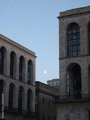 Fototapeta premium twilight sky with crecsent moon in duomo area, milan