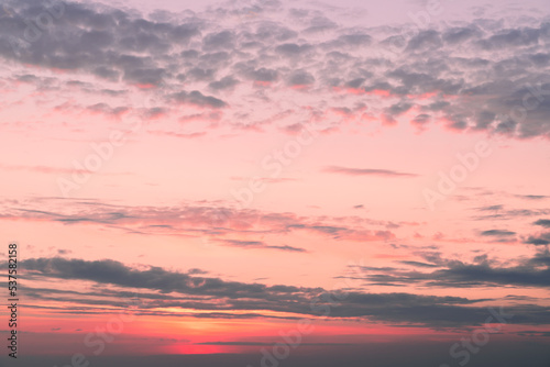 © Tatiana Maramygina, Obraz premium Twilight sky with effect of light pastel tone. Colorful clouds on the dramatic sunset sky