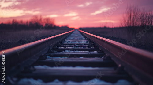 © Shanorsila, Fototapeta premium Twilight Tracks: A Journey Into the Horizon