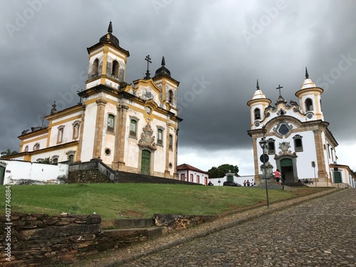 © Rafael, Fototapeta premium Twin churches in Mariana, Brazil