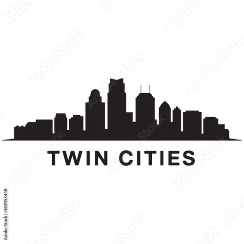 © Nargis, Naklejka premium Twin Cities skyline. Landscape Twin Cities, Minnesota. Vector illustration. Vector black silhouette. with white background.