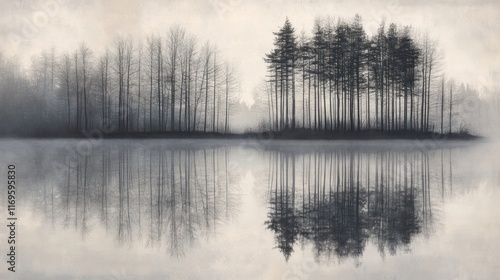 © LyceeChee, Fototapeta premium Twin Island Trees Reflected In Calm Water