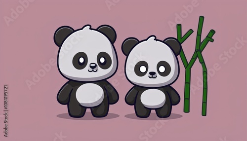 Fototapeta premium Twin Panda wit Flat Cartoon Illustration style