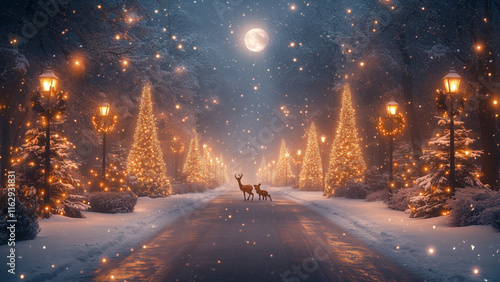 Fototapeta premium Twinkling Lights and Winter Whimsy: A Magical Forest Scene