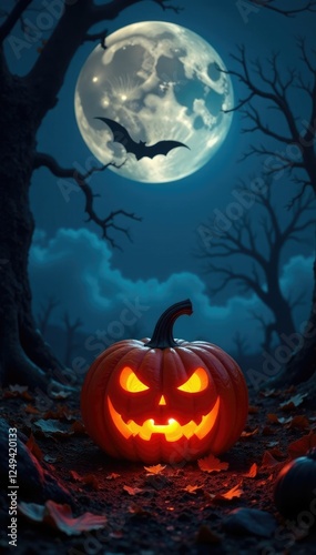 Fototapeta premium Twinkling moonlight casts eerie glow on pumpkin, shadows, night, moon