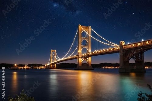 © Michael, Obraz premium Twinkling Night Bridge Artwork Under a Starry Sky