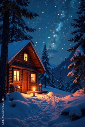 Fototapeta premium Twinkling stars and candlelight in a cozy cabin, winter, warmth
