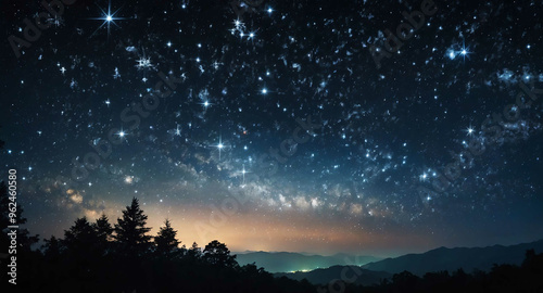 © sevenSkies, Naklejka premium Twinkling stars holiday sky abstract background