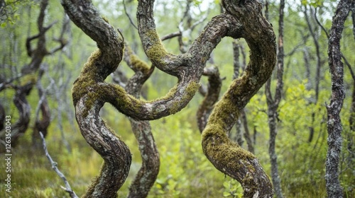 Fototapeta premium Twisted Branches Embraced by Lush Moss in Verdant Forest