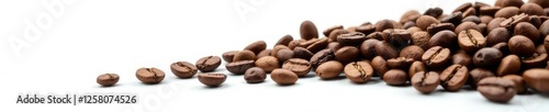 © Prasert, Naklejka premium Twisted curve of roasted coffee beans on white background, coffee beans, beans