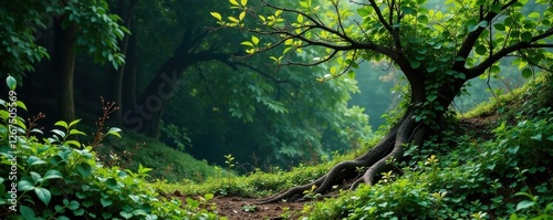 © Prayad, Fototapeta premium Twisted Ivy Vine Branches Amidst Brushes, nature, foliage, artistic tools