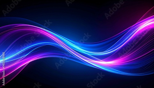 Fototapeta premium Twisting neon lines in blue and pink on dark background