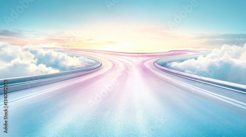 Naklejka premium Twisting scenic drive floating road travel guide serene nature panoramic views