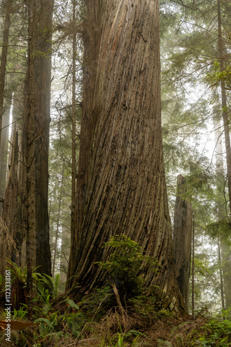 Obraz premium Twisting Texture Of Redwood Bark In Fog