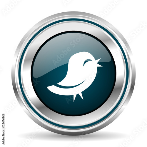© Alex White, Obraz premium Twitter vector icon. Chrome border round web button. Silver metallic pushbutton.